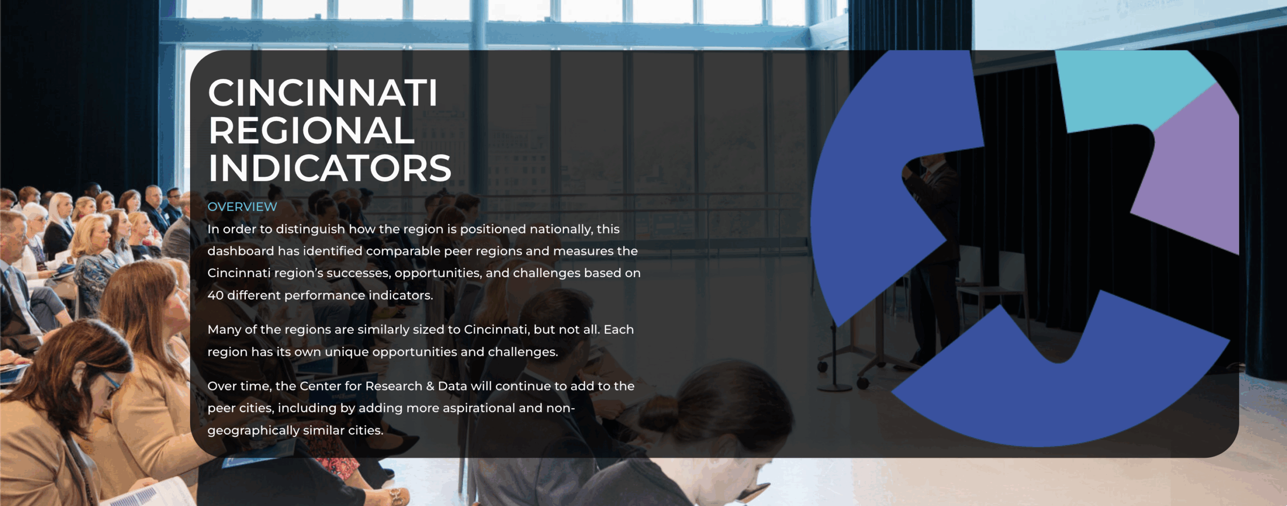 The Cincinnati Chamber’s Center for Research & Data is an initiative to deliver data-driven analysis regarding vital regional indicators and outcomes. The Center helps regional leaders, community partners, and policymakers make informed decisions around priorities like talent attraction, inclusive economic growth, and community-wide goals. We provide actionable insights to support the mission and vision of the Chamber.